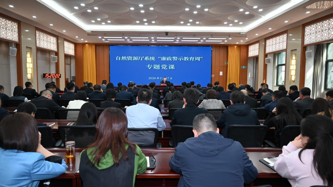 3月27日,按照自治区党委关于开展党员领导干部“廉政警示教育周”活动部署要求,自然资源厅党组书记、厅长常晋宏讲授廉政专题党课。厅党组成员,二级巡视员,总工程师,驻厅纪检监察组和机关处级干部,直属事业单位班子成员参加。